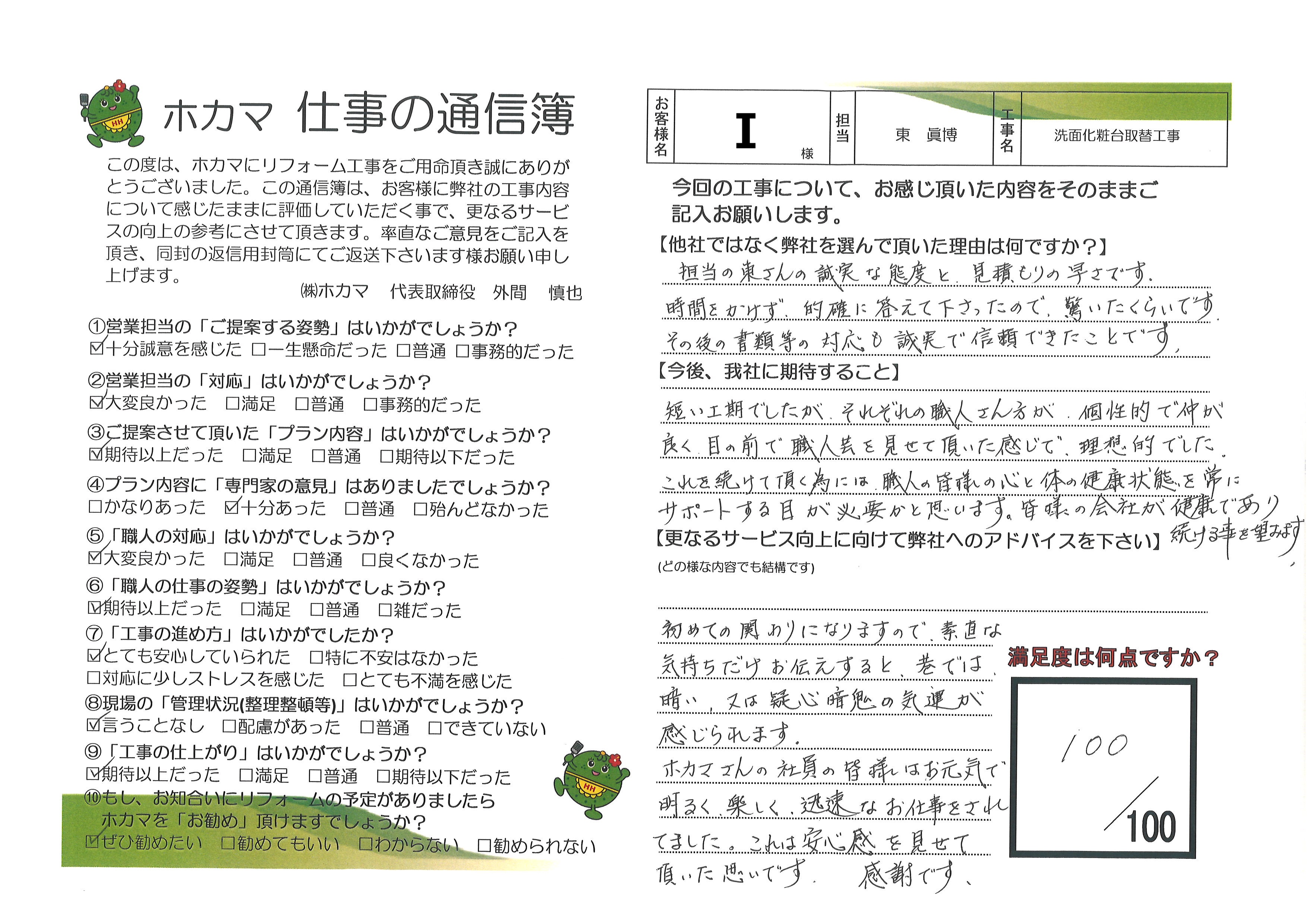 【通信簿】I様邸 洗面化粧台取替工事(^^)沖縄でリフォーム&増改築のことならホカマホーム(^^)