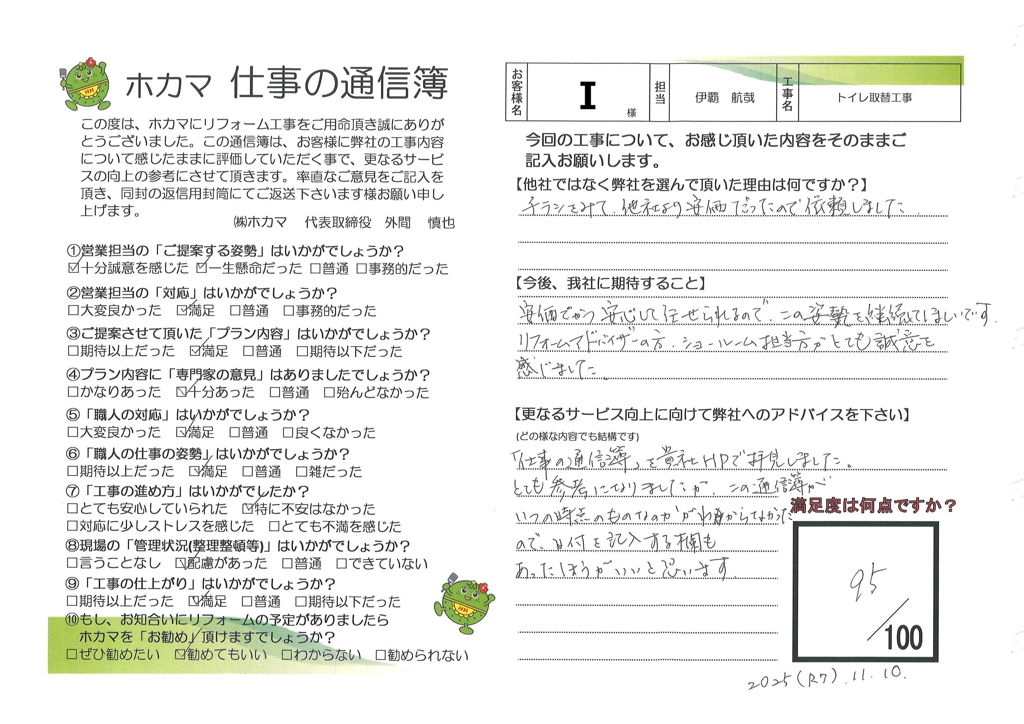 【通信簿】I様邸 トイレ取替工事(^^)沖縄でリフォーム&増改築のことならホカマホーム(^^)