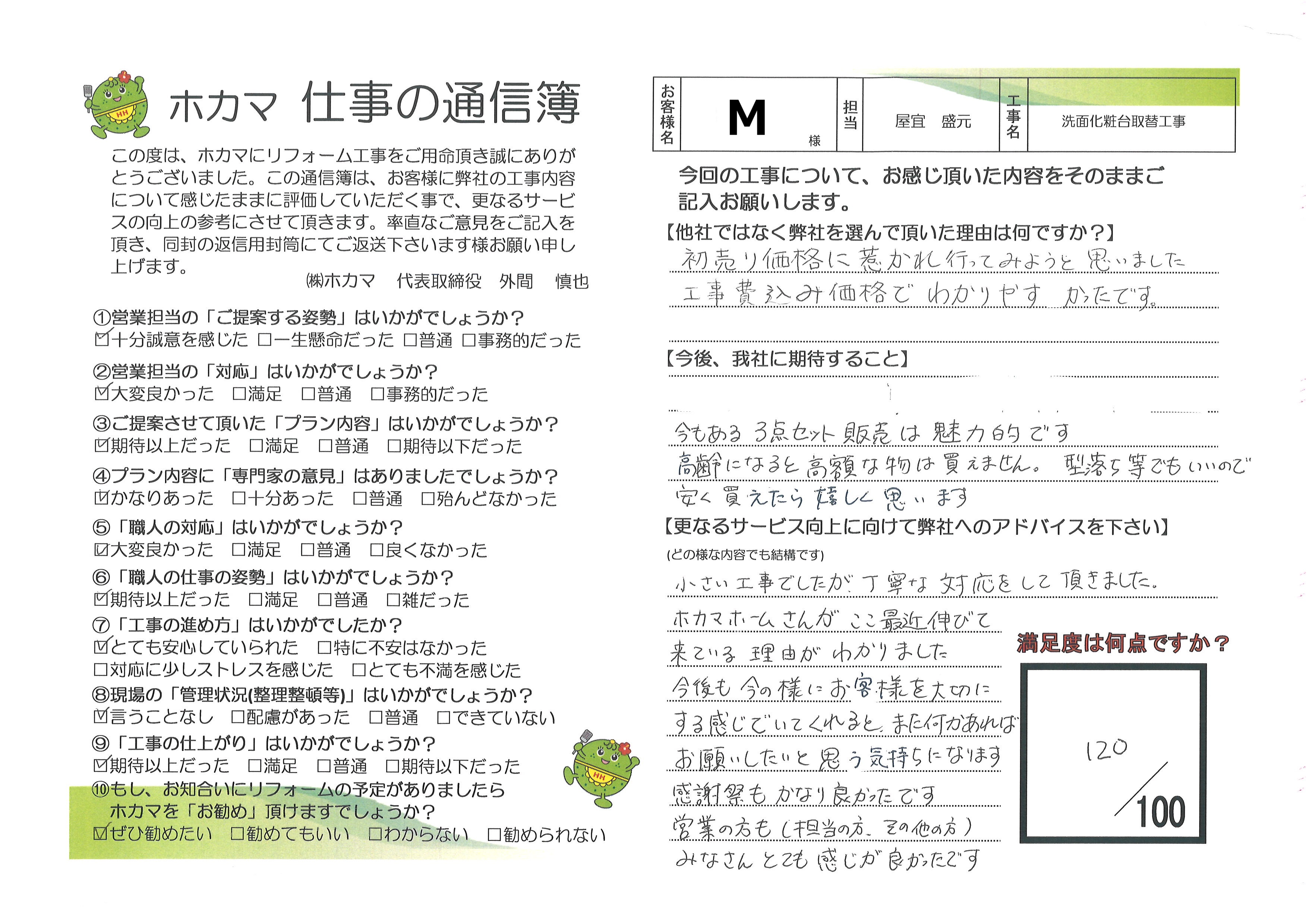 【通信簿】M様邸 洗面化粧台改修工事(^^)沖縄でリフォーム&増改築のことならホカマホーム(^^)