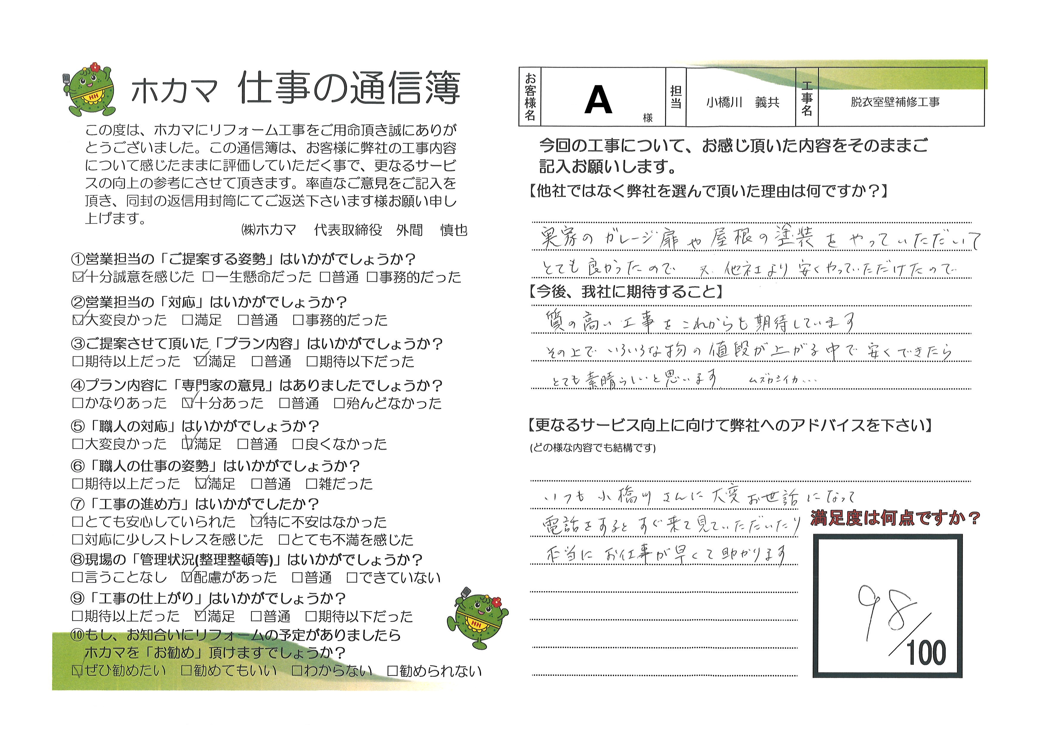 【通信簿】A様邸 脱衣室壁補修工事(^^)沖縄でリフォーム&増改築のことならホカマホーム(^^)