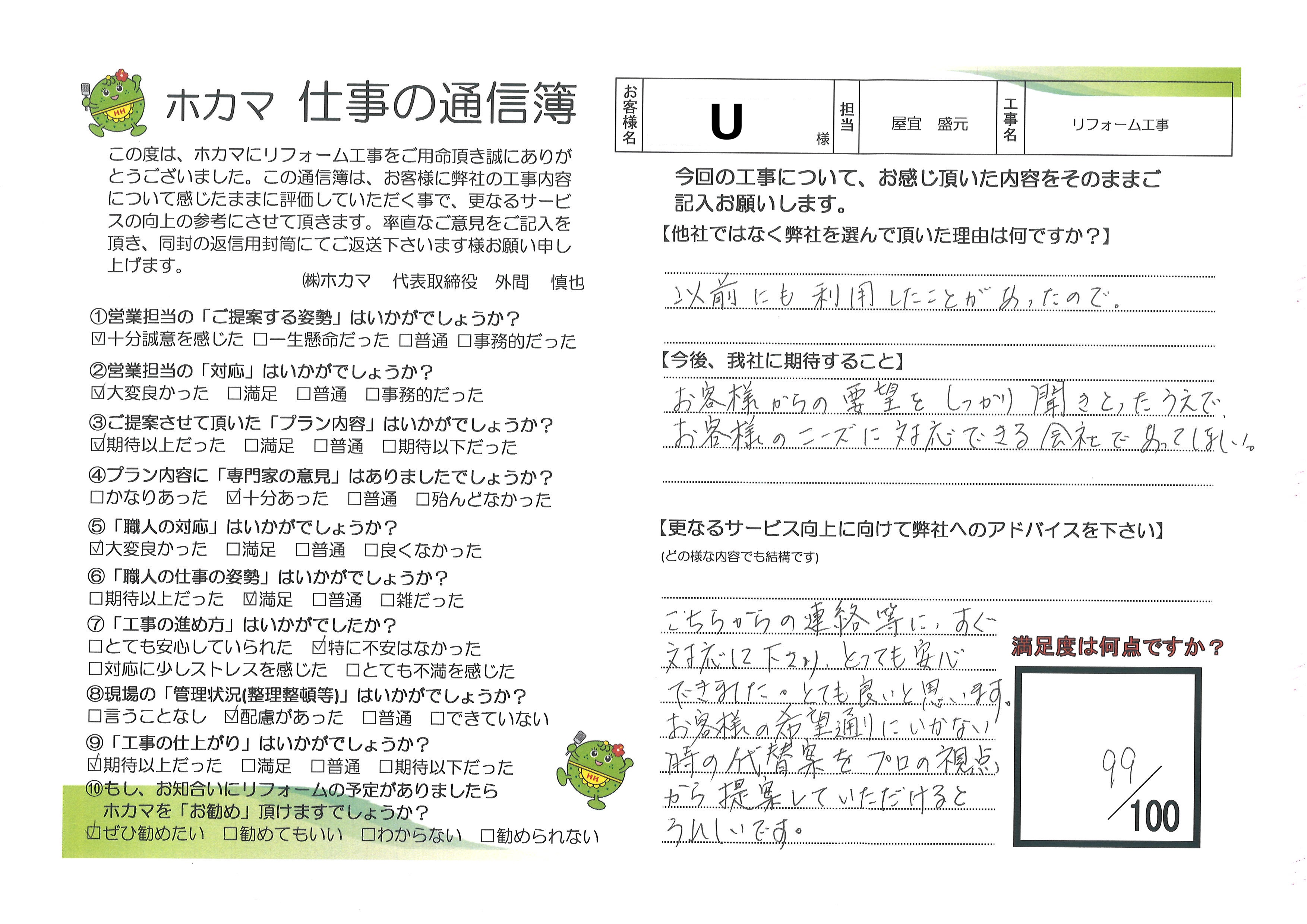 【通信簿】U様邸 リフォーム工事(^^)沖縄でリフォーム&増改築のことならホカマホーム(^^)