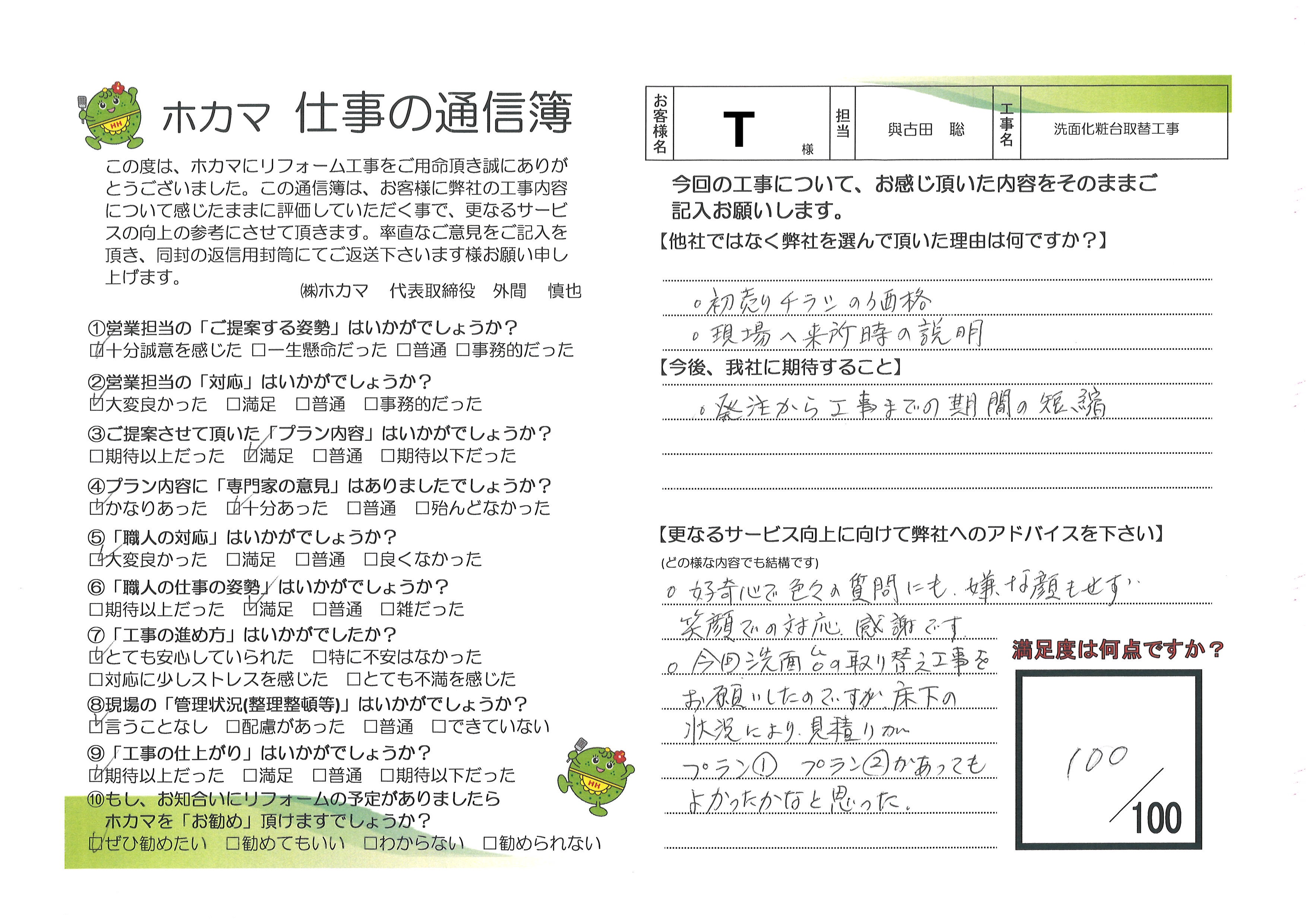 【通信簿】T様邸 洗面台取替工事(^^)沖縄でリフォーム&増改築のことならホカマホーム(^^)