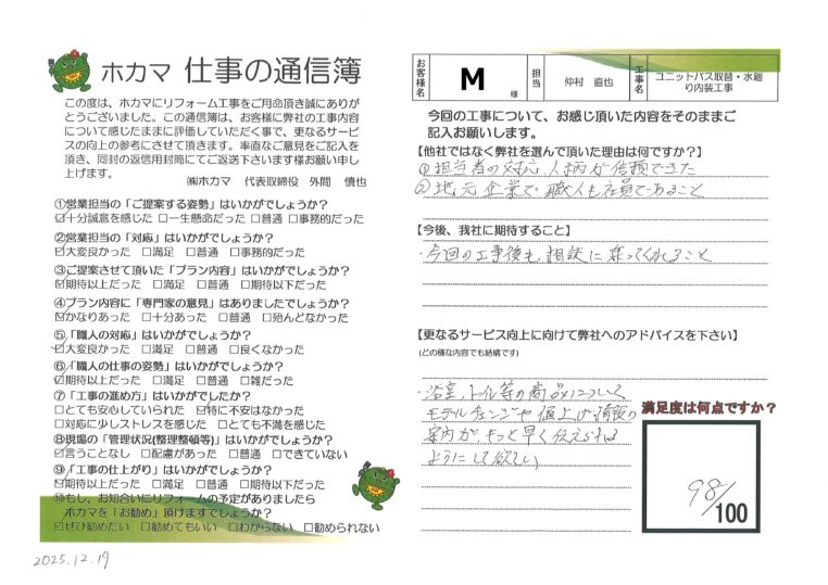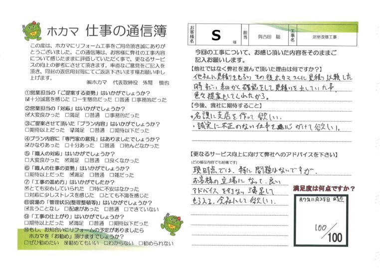 • 【通信簿】S様邸 浴室改修工事(^^)沖縄でリフォーム&増改築のことならホカマホーム(^^)
