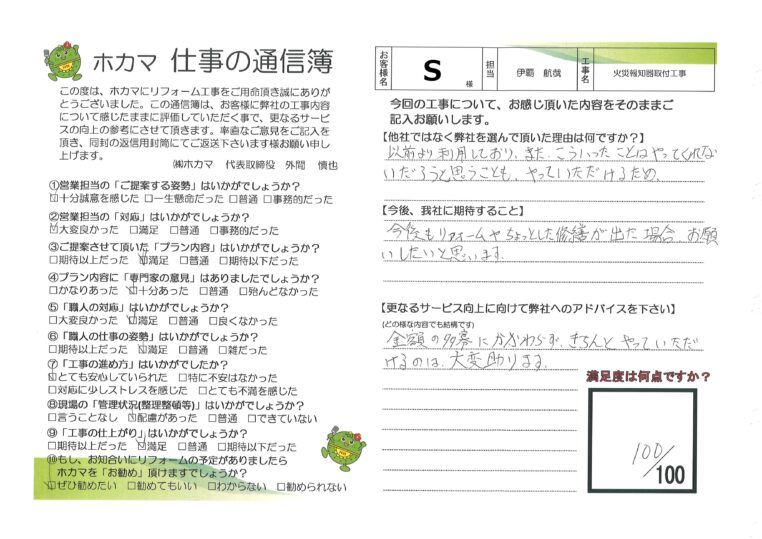 • 【通信簿】S様邸 火災報知器取付工事(^^)沖縄でリフォーム&増改築のことならホカマホーム(^^)