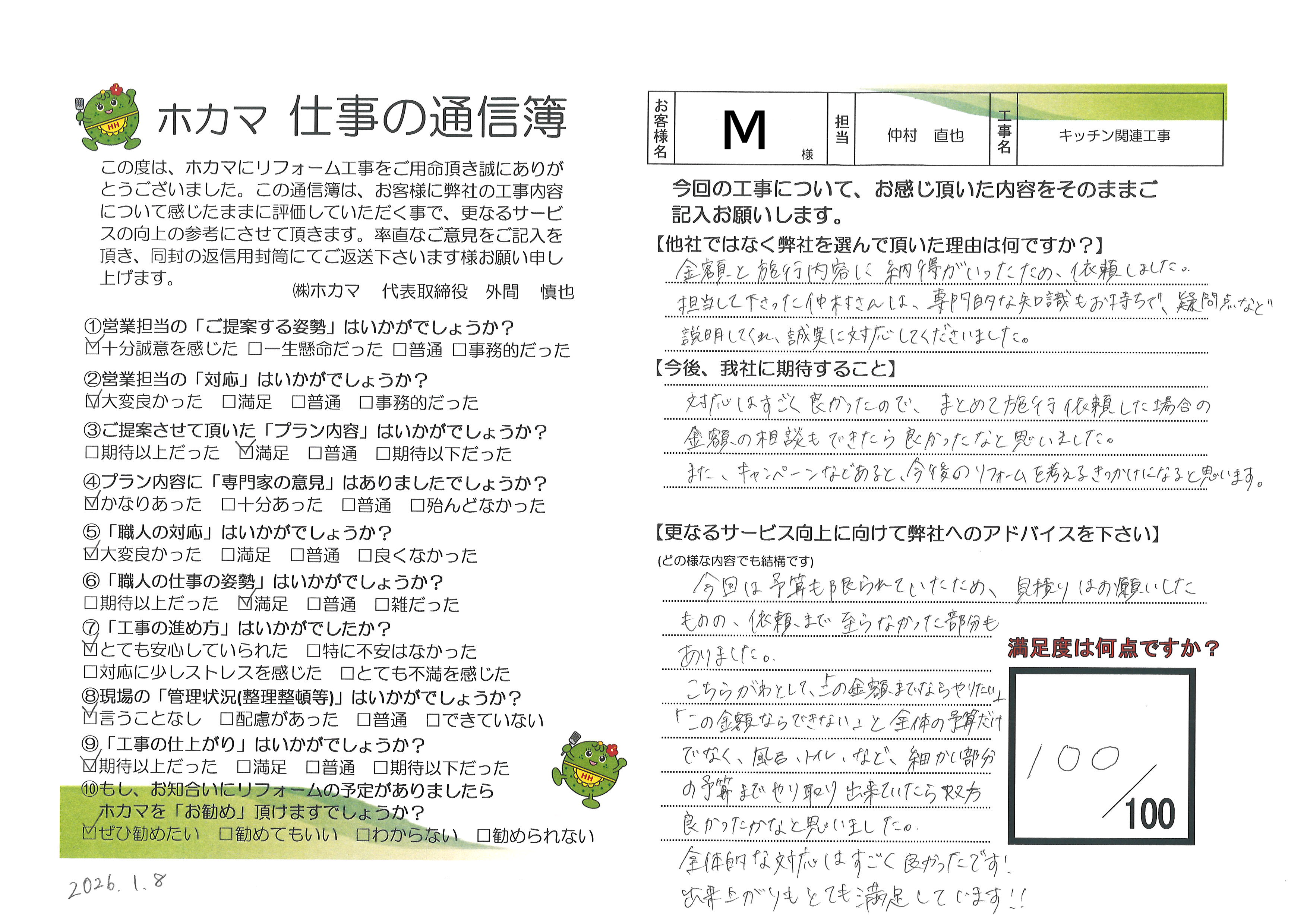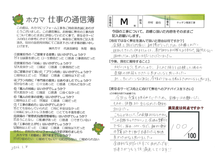 • 【通信簿】M様邸 キッチン関連工事(^^)沖縄でリフォーム&増改築のことならホカマホーム(^^)