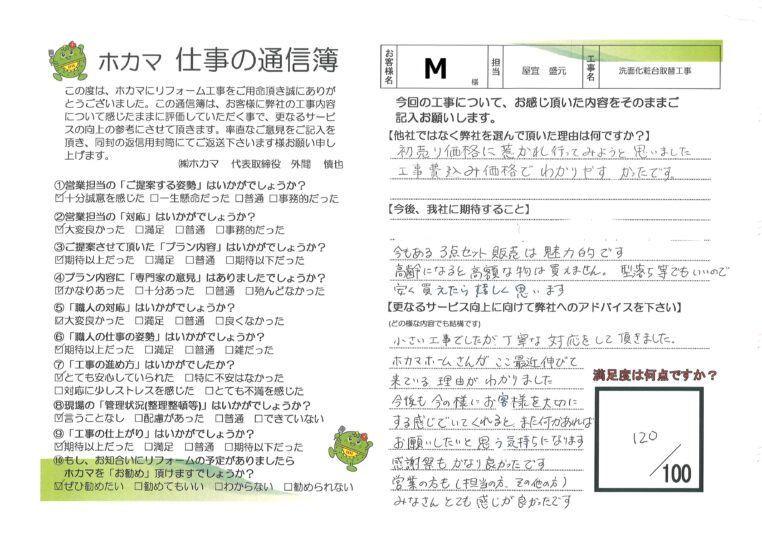 • 【通信簿】M様邸 洗面台取替工事(^^)沖縄でリフォーム&増改築のことならホカマホーム(^^)