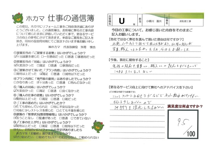 • 【通信簿】U様邸 床貼替工事(^^)沖縄でリフォーム&増改築のことならホカマホーム(^^)