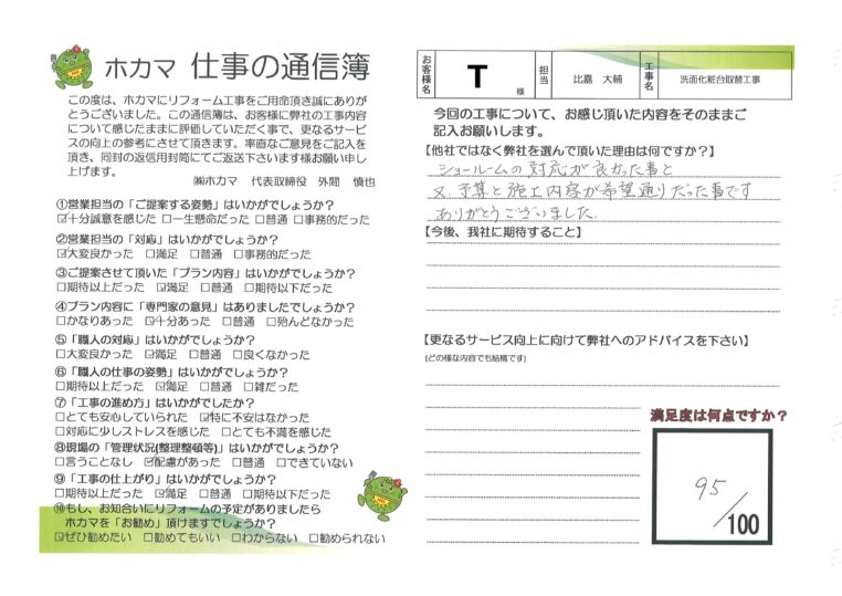• 【通信簿】T様邸 洗面台取替工事(^^)沖縄でリフォーム&増改築のことならホカマホーム(^^)