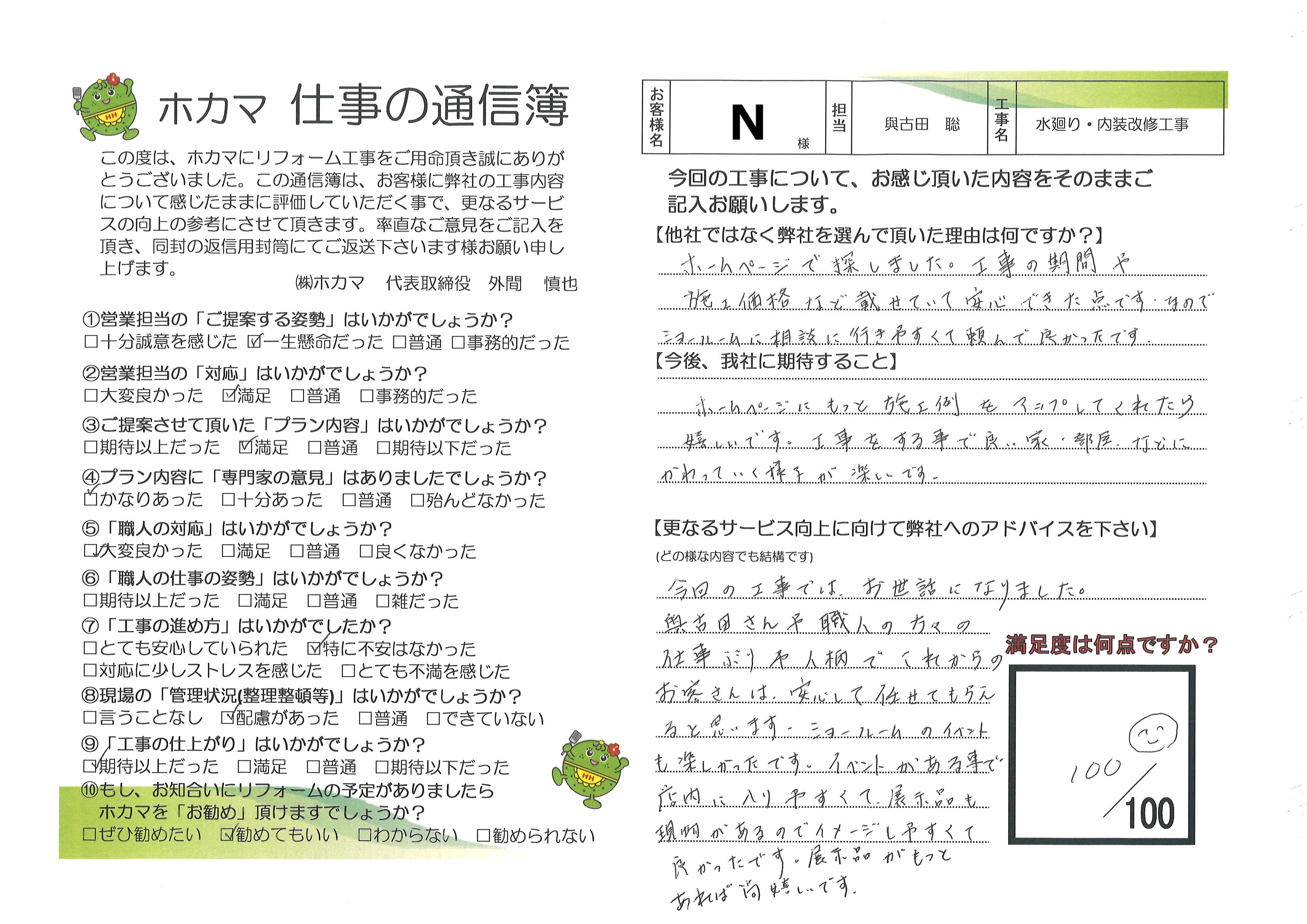 【通信簿】N様邸 水廻り・内装改修工事(^^)沖縄でリフォーム&増改築のことならホカマホーム(^^)