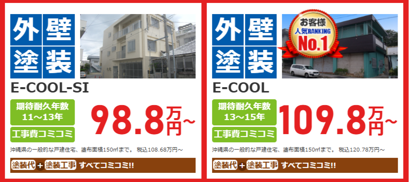 また他県に比べ強い紫外線を浴びたりと高温になり、台風も多いことから雨風にさらされますので沖縄に建てられている住宅の外壁はダメージを受けやすい環境にあります。